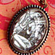 08. Love Will Tear Us Apart Necklace > $27.00 This is an absolutely precious necklace that depicts two Indian god lovers sitting very sweetly together. The pendant is very substantial in size and measures just under 2 inches. Stone is set in a brass setting. Image is protected and enhanced by a clear magnifying cabochon. Necklace opens and closes with a lovely hook closure.