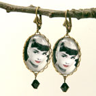 We now present Abe Lincoln the sequal. Due to popular demand we present the Abe Lincoln Earrings. This set represents your best patriotic sense of style.Protected by a magnifying cabochon, they measure18x25mm. There is a vintage black faceted crystal hanging from the bottom for an extra something special. Earring hooks have a hinge closure to ensure a secure hold, just in case you decide to dance the night away.